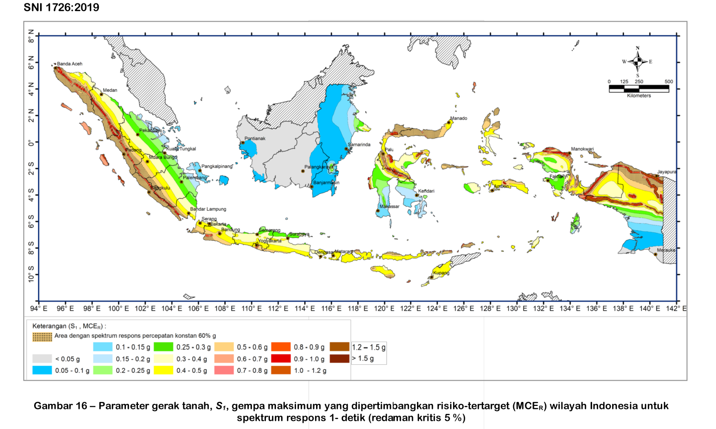 | Gambar 16 | Parameter gerak tanah, S1, gempa maksimum yang dipertimbangkan risikotertarget