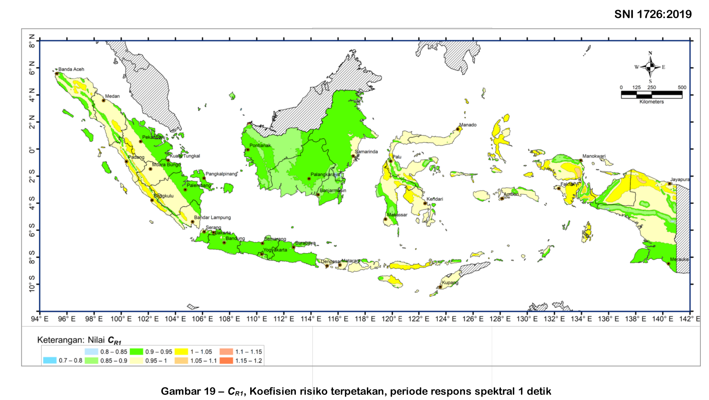 | Gambar 19 | CR1, Koefisien risiko terpetakan, periode respons spektral 1 detik | 235